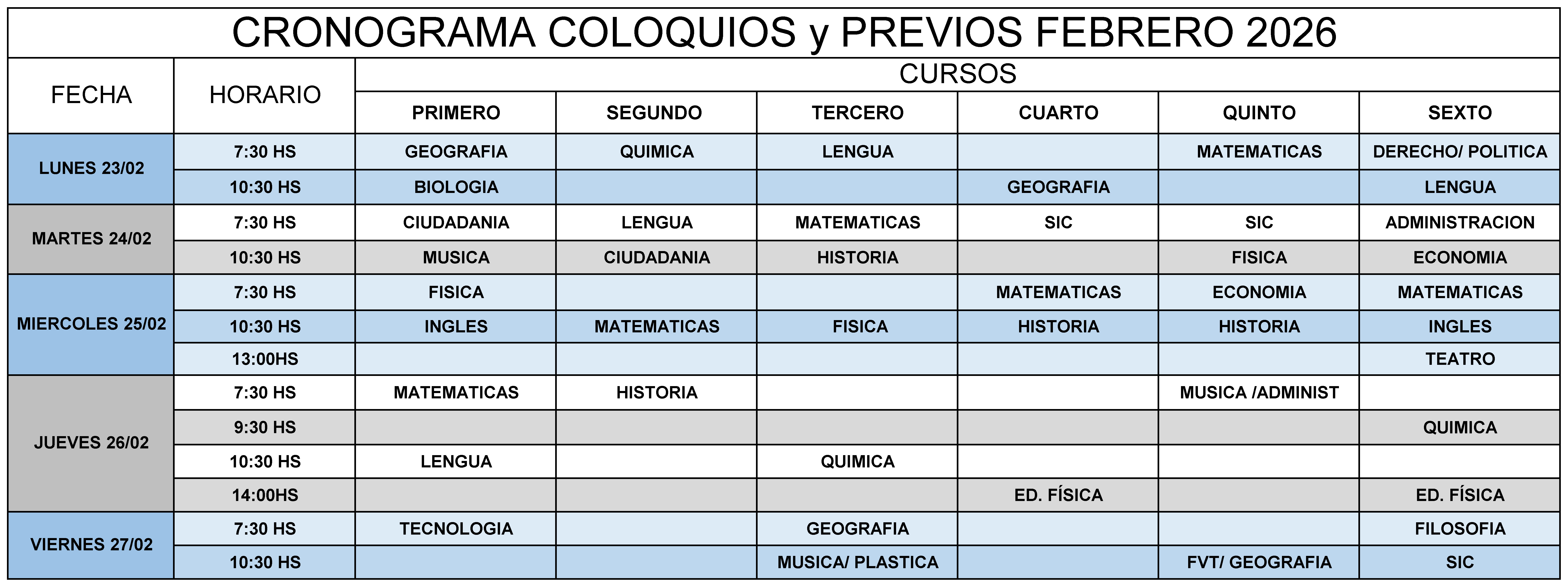 Cronograma Coloquios y Exámenes Previos Febrero 2026